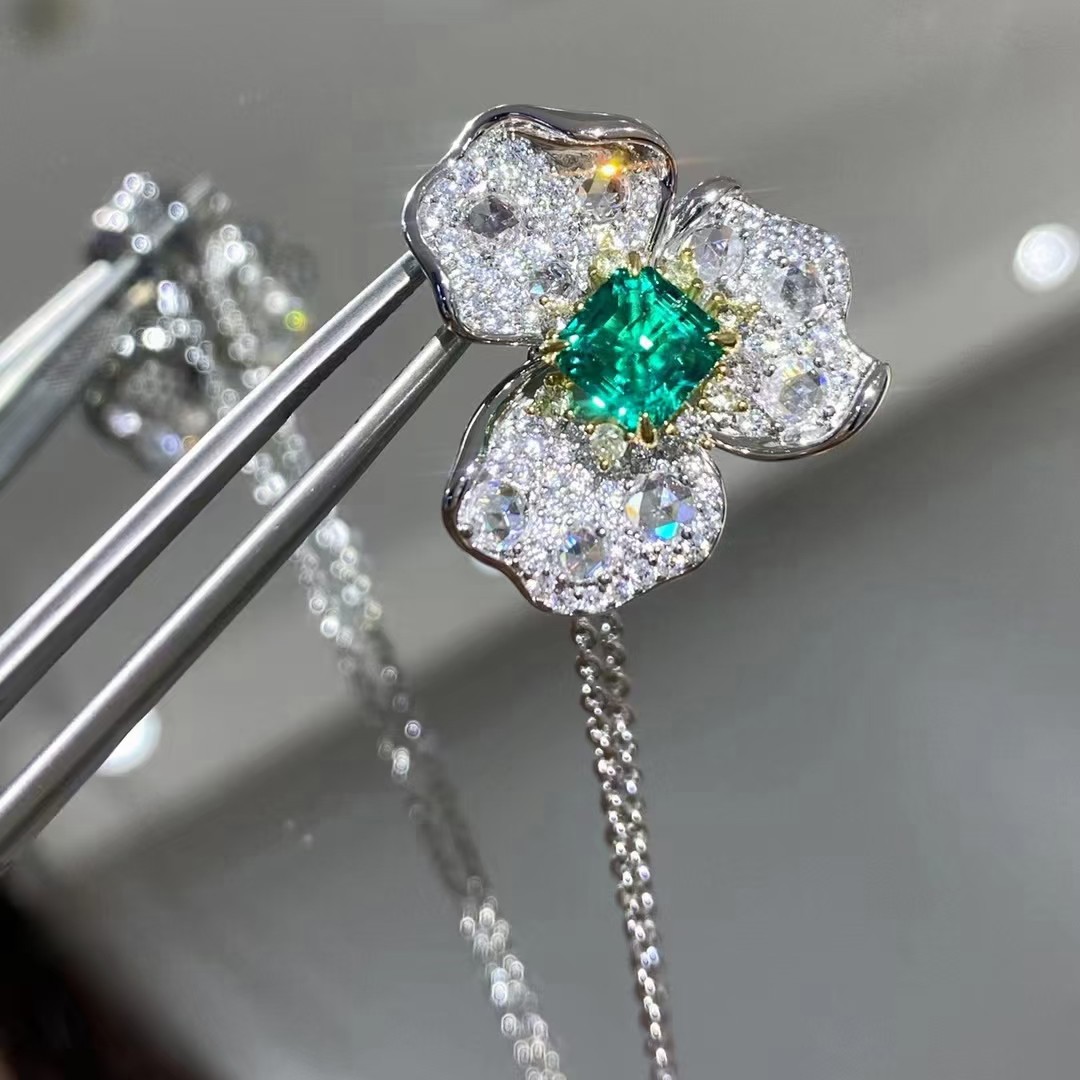 培育祖母綠鈴蘭花頸鏈💕 ✅高端材料款式都是金工標準,祖母綠主石1.2卡,哥倫比亞色的瑩瑩綠光,攝人心魂,而且這個卡數很好駕馭。 ✅花瓣工藝做的很細緻,立體自然,一朵花有鑲嵌9顆玫瑰切割的鑽,像是滴落在花瓣上的水珠,意境美又傳神,無論設計還是細節,都是妥妥的高級珠寶感。其他細鑽都采用最頂級的比利時石,真鑽切割火彩一流💯真金即視感,都是高品質是供應做18k金訂製的。不是市場上霧濛濛的那種,妥妥就是鑽石效果👍 ✅任何場合都不失色的設計!加上哥倫比亞祖母綠無法忽視的熒光感~不負綠寶之王的稱號,實在是太美了,簡直是珠寶級精品 ⚠️培育祖母綠和天然祖母綠的區別在於,一個是天然形成,一個是科學環境培育。它所呈現的特徵是完全一致的! ⚠️祖母綠知識⚠️ 👉大部分【天然祖母綠】都有浸油處理,棉絮雜質比較多。所以晶體會比較渾濁有點霧濛濛的感覺。 👉我們選用的【培育祖母綠】,微無油玻璃體,通透度很高,熒光感很強,顏色都是Vivid Green~木佐綠,換句話說,就是天然培育石的天花板級別了😃 ✅925銀鍍金材質,厚金 ✅白金色 ✅鏈長40+5cm