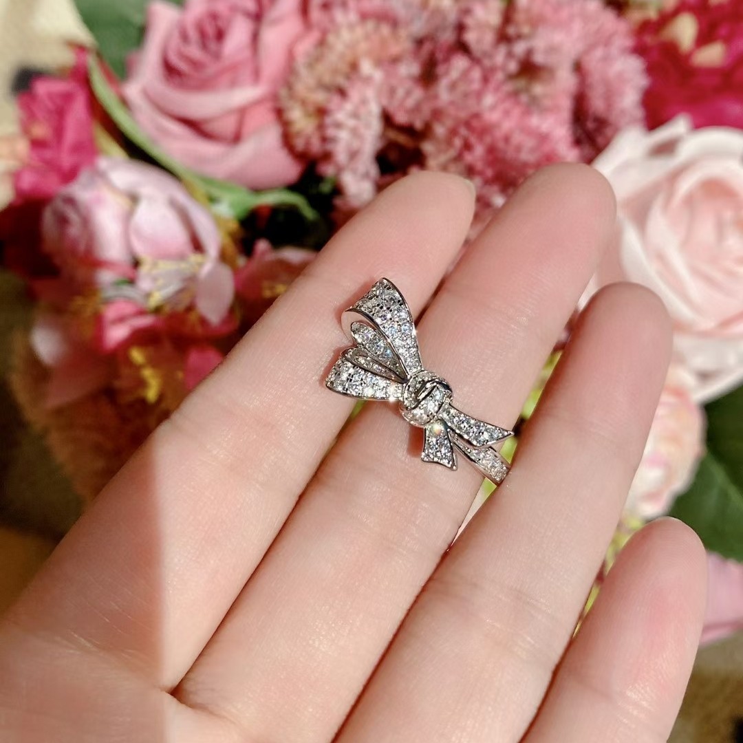 NEW✨Bow蝴蝶結戒指✨ 💕女神款式,生動流暢的立體造型,修修改改造了好久才出來的一款。 鑲嵌排石也是煞費苦心,因為蝴蝶結看不見的結構裡面也是滿鑲的,所以要做精緻特別不容易。 另外背面開孔設計,火彩更加璀璨,碎鑽呈現buling buling的效果! 💕第六代頂級比利時人造鑽,真鑽切割技術,鑽不會變蒙發白,更通透自然💯 👉925銀鍍金材質,白金色配色不怕掉色 👉做了港10/12/14/16四個碼