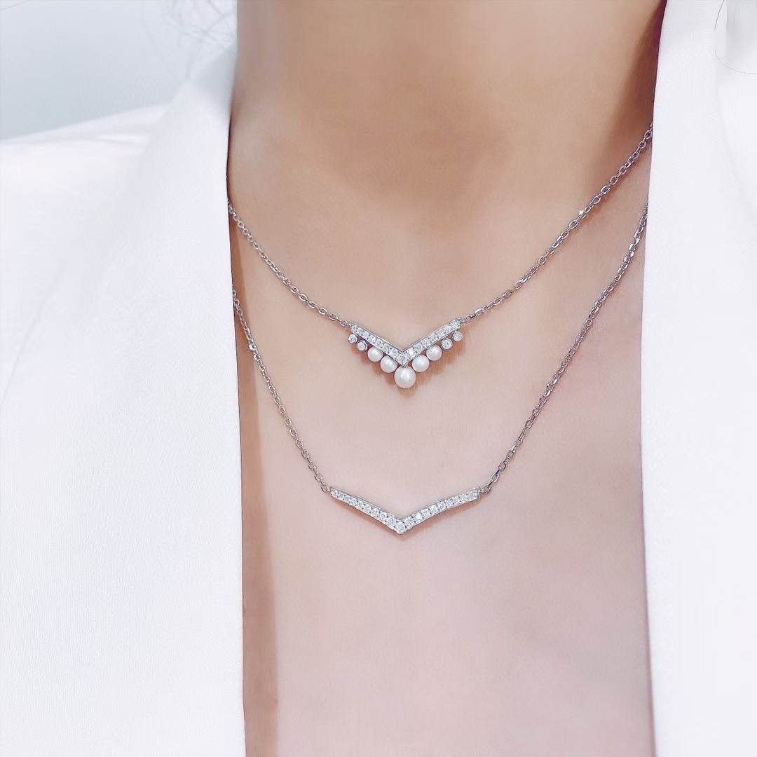 NEW✨V字排鑽頸鏈✨ 🔥熱辣新款,將冠冕與經典白鷺飾件的“V”字造型融入現代珠寶設計。 盡顯柔美女性特質,高貴典雅而不失大膽率性,為個人風格增添風雅與自在風範。 💕喜歡簡約風格的仙女們可以看過來了,少了珍珠的點綴,但多了簡約純粹的幾何美學,經典V字元素,讓佩戴也多了更多選擇,疊戴/單戴都能解鎖不一樣的風格 💕款式簡而美,密鑲一排小鑽,都靠穩妥的版型倒模后的一次次執模和拋光成就品質。 單戴實拍,喜歡簡約素雅,一條可以滿足 疊戴實拍💕優雅美麗的小款式,強烈建議和珍珠款疊戴喔,絕美CP 👉925銀鍍金材質,白金色配色不用擔心掉色 👉鏈長39+3+3cm